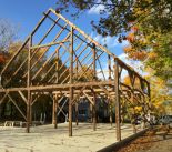 Barnstable, Ma. Circa 1870 carriage barn from Granite, NH. This dropped tie frame was cut from hewn and sawn Hemlock. Many of the hewn timbers are re-purposed from another frame. (typical in later era frames)