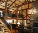 This Circa 1790 eave entry English Barn was relocated from East Bethel to Bethel, Maine and converted to a house. The kitchen and most of the bedrooms and bathrooms were located in two additions to maintain the openness of the original barn frame.