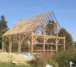 This is a new 34’ x 40’ Barn cut from antique timber. This is a dropped tie frame with common rafters and a major purlin. The timber was salvaged from the property’s original 40’ x 60’ barn that was falling down. The salvageable material dictated the size and design of the frame. The frame design is typical of barns in Northern Maine.