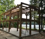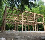 This is a shed style frame cut from hemlock and oak. The 2-story frame is a lake house on Granger Pond in Denmark, Maine.