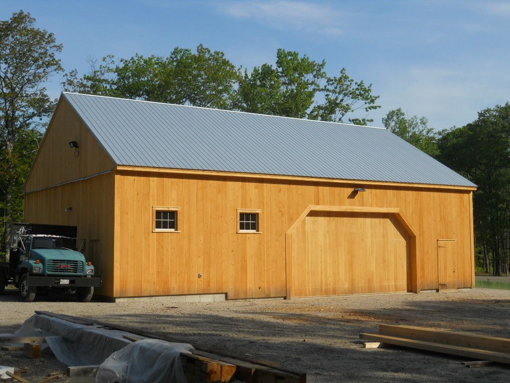 Here is Maine Mountain Post & Beam's new shop, circa 2013. We are located at 417 Portland Street in Fryeburg, Maine. (Just South of town on Route 113) The 40' X 60' frame is rough sawn Hemlock with Red Oak braces cut from the site. Stop in and say hi!