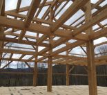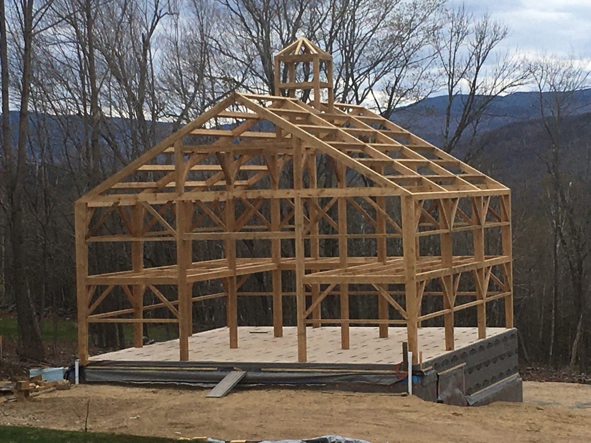 This is a classic gable entry Yankee Barn, 36’ x 40'. The design and joinery are historically correct (as are all of our frames.) The full tie and plate frame incorporates the English Tying Joint and is cut from Hemlock, Pine and Oak.