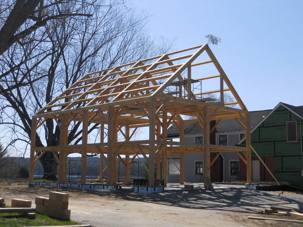 Here is a 31' x 41' barn frame cut from Hemlock, Pine and Oak.Full tie and plate frame utilizing the English Tying joint. (plates are full 41' timbers!) There is one clear span Queen Post Truss in the frame.