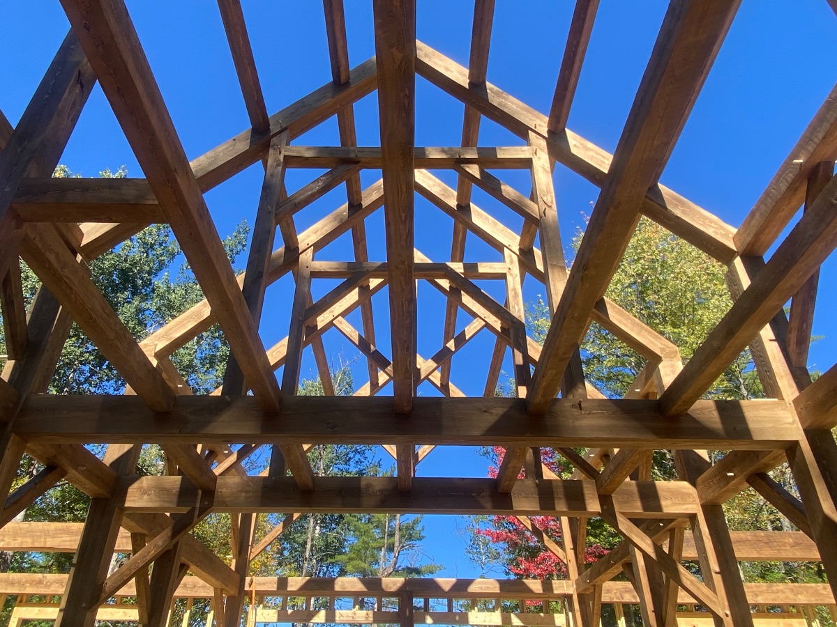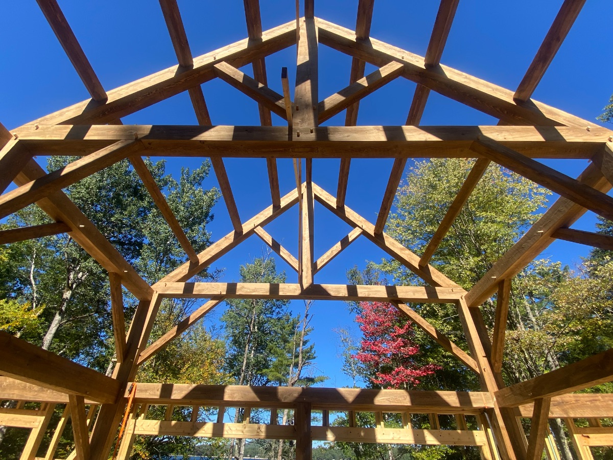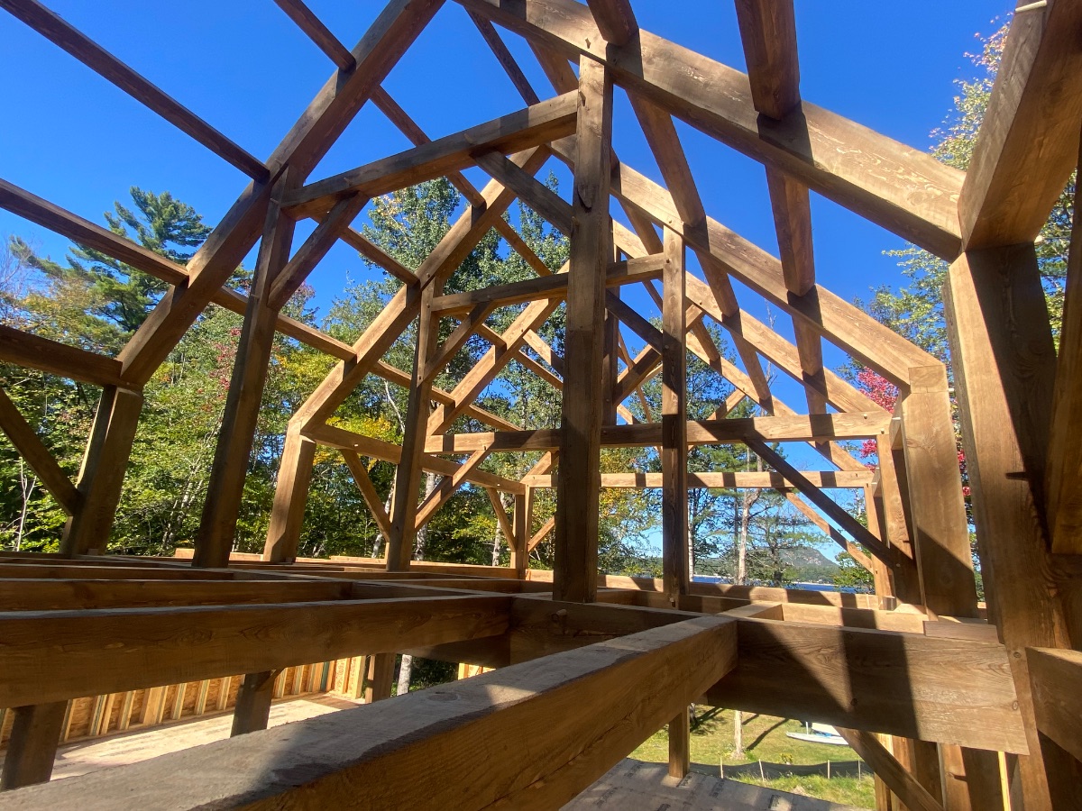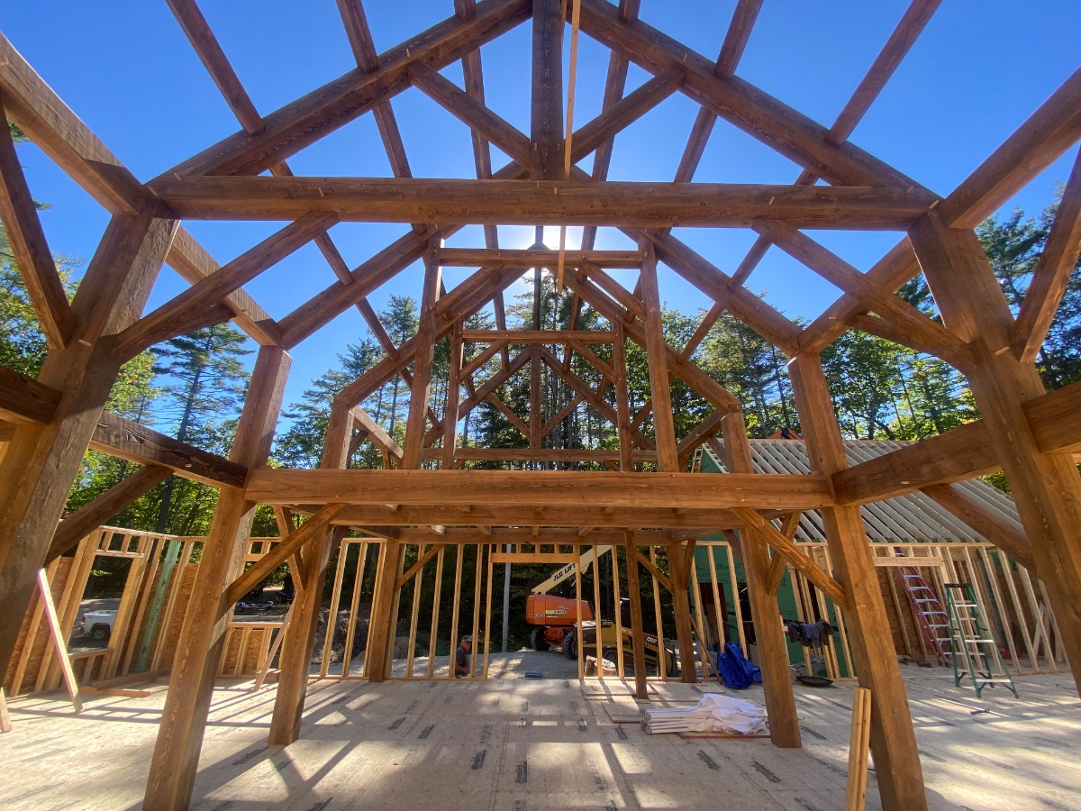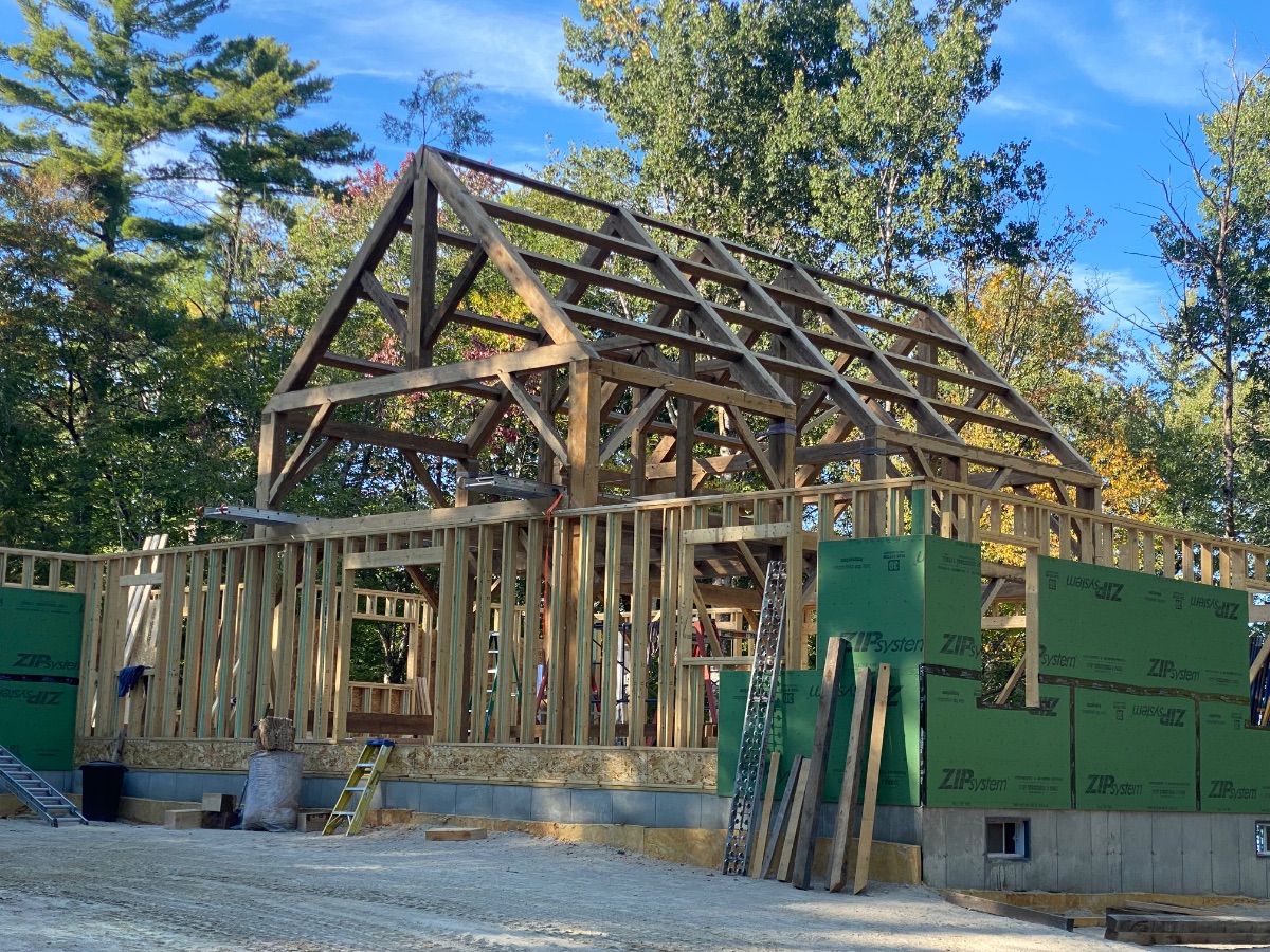 This is the great room to a new house being built on Lovewell Pond. The frame is 20'x36', partially lofted with a clear span king post truss.